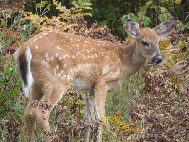 On August 2, 2012 we received a fawn that had been attacked by a bear. People looked out to see a bear carrying a fawn across their yard. Their dog saw it too and gave chase. The bear dropped the fawn. Then the people couldn’t find anyone to bring the fawn to for help. They did the best they could and fed her what they thought they should for a few days, not knowing it was not good for her. She then was transferred to a center not permitted to treat it and eventually found her way to us several days after the initial bear attack.